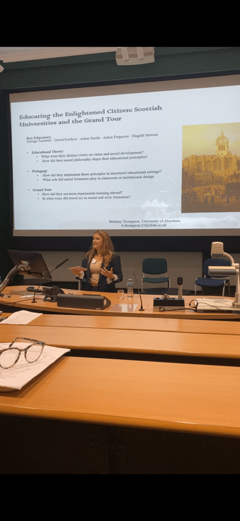 I ended the day by settling into my home for the next four nights: the Stirling Court Hotel on the University of Stirling campus. The campus, built in the 1960s, is a gem of mid-century architecture — and Outlander fans may recognize it as the fictional Inverness College, where Brianna visits Roger and runs into Geillis Duncan in 1968 (Season 2). The Pathfoot Building, where the conference was held, was also used in the filming. It was such an incredible journey to be in the very place I’ve studied — and seen on screen.